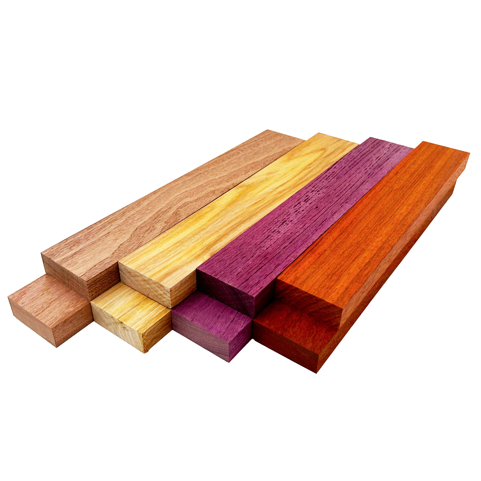 Colorful Exotics Variety Pack - Sapele, Canarywood, Purpleheart, Padauk - 3/4" x 2" (8 Pcs)